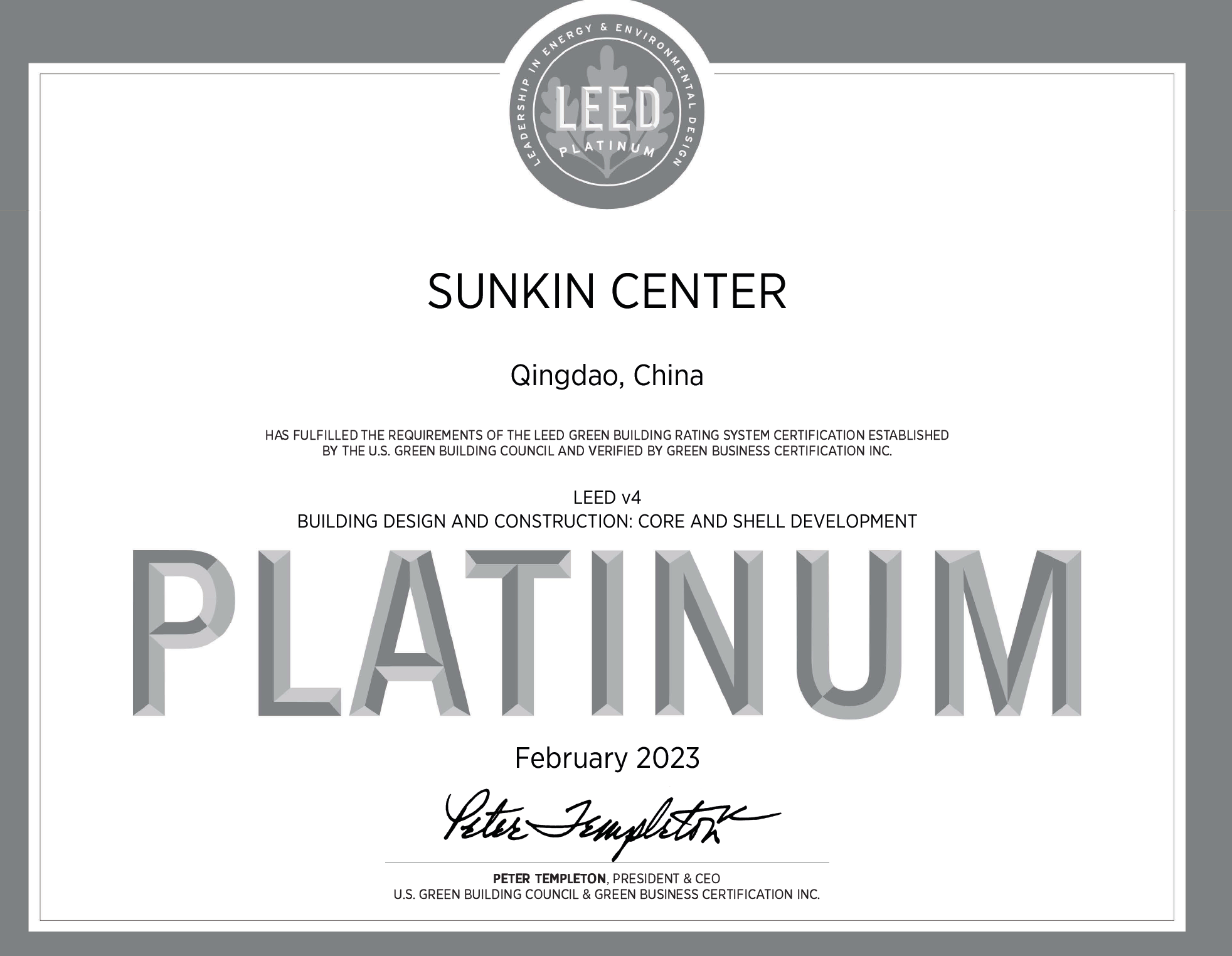 活動(dòng)公告:鑫江中心榮獲LEED鉑金級(jí)認(rèn)證
